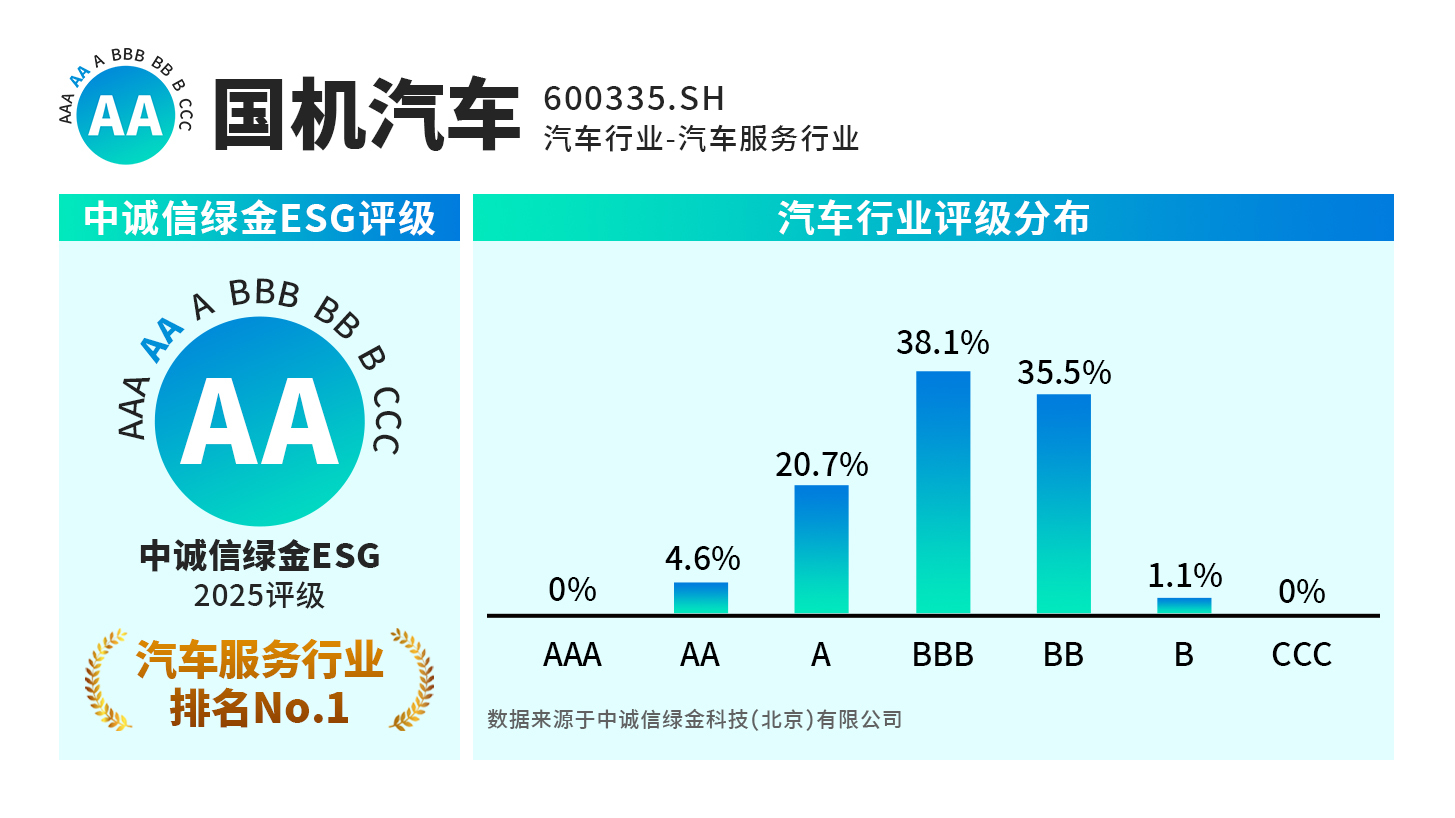 近日,國機(jī)汽車股份有限公司(證券代碼:600335.SH),榮獲所在行業(yè)中誠信綠金ESG最高評級AA,躋身上市公司前4%行列,彰顯公司在環(huán)境、社會和治理(ESG)領(lǐng)域的卓越表現(xiàn)與顯著進(jìn)步。中誠信綠金是中國領(lǐng)先的ESG評級機(jī)構(gòu),構(gòu)建了一套深度融合本土實踐與國際規(guī)范的評級體系,其將A...